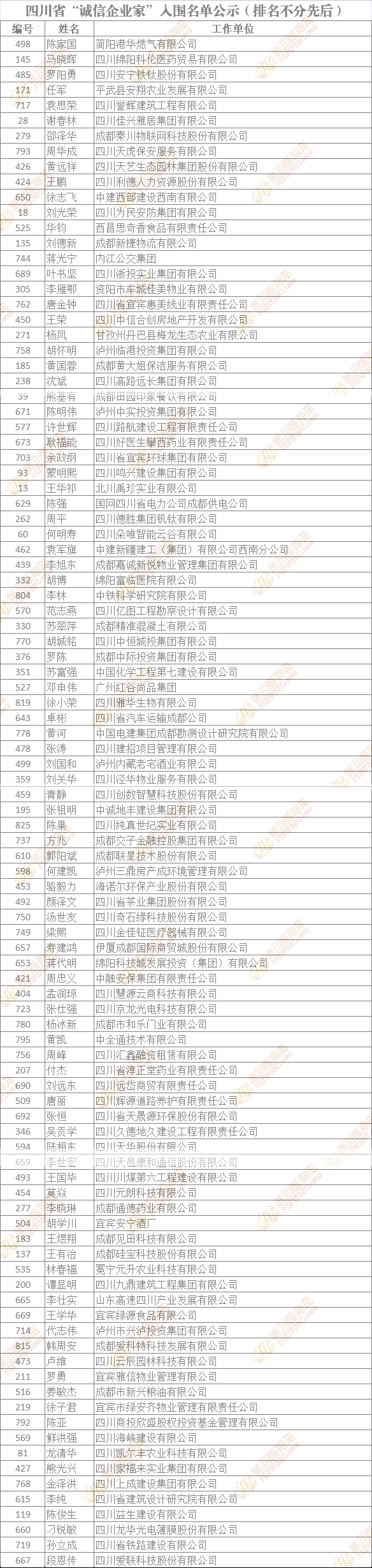 誠信企業(yè)家公示名單如下(排名不分先后):